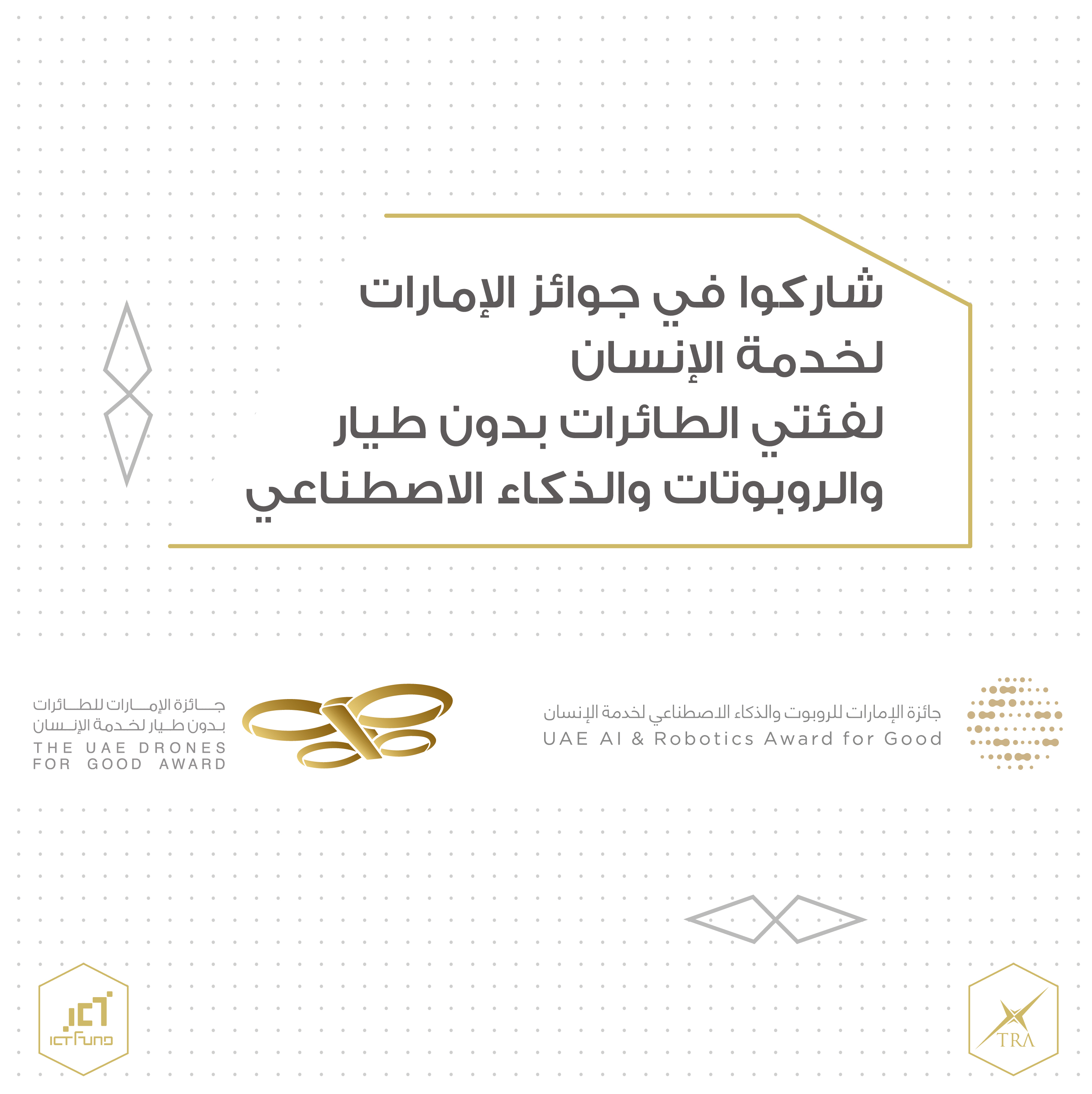 أعلن صندوق تطوير قطاع الاتصالات وتقنية المعلومات (ICTFund)، ذراع تمويل الهيئة العامة لتنظيم قطاع الاتصالات في الدولة عن تنظيم جائزة الإمارات للطائرات بدون طيار، وجائزة الإمارات للروبوت والذكاء الاصطناعي على المستويين المحلي والدولي، والتي تستقطب الأفكار والتصاميم المبتكرة لخدمة الإنسان، من خلال توظيف إمكانيات الطائرات بدون طيار والروبوتات في تحقيق خدمات مبتكرة لمختلف القطاعات الحيوية والخدمية مثل البيئة والتعليم والصحة والخدمات اللوجستية وغيرها.