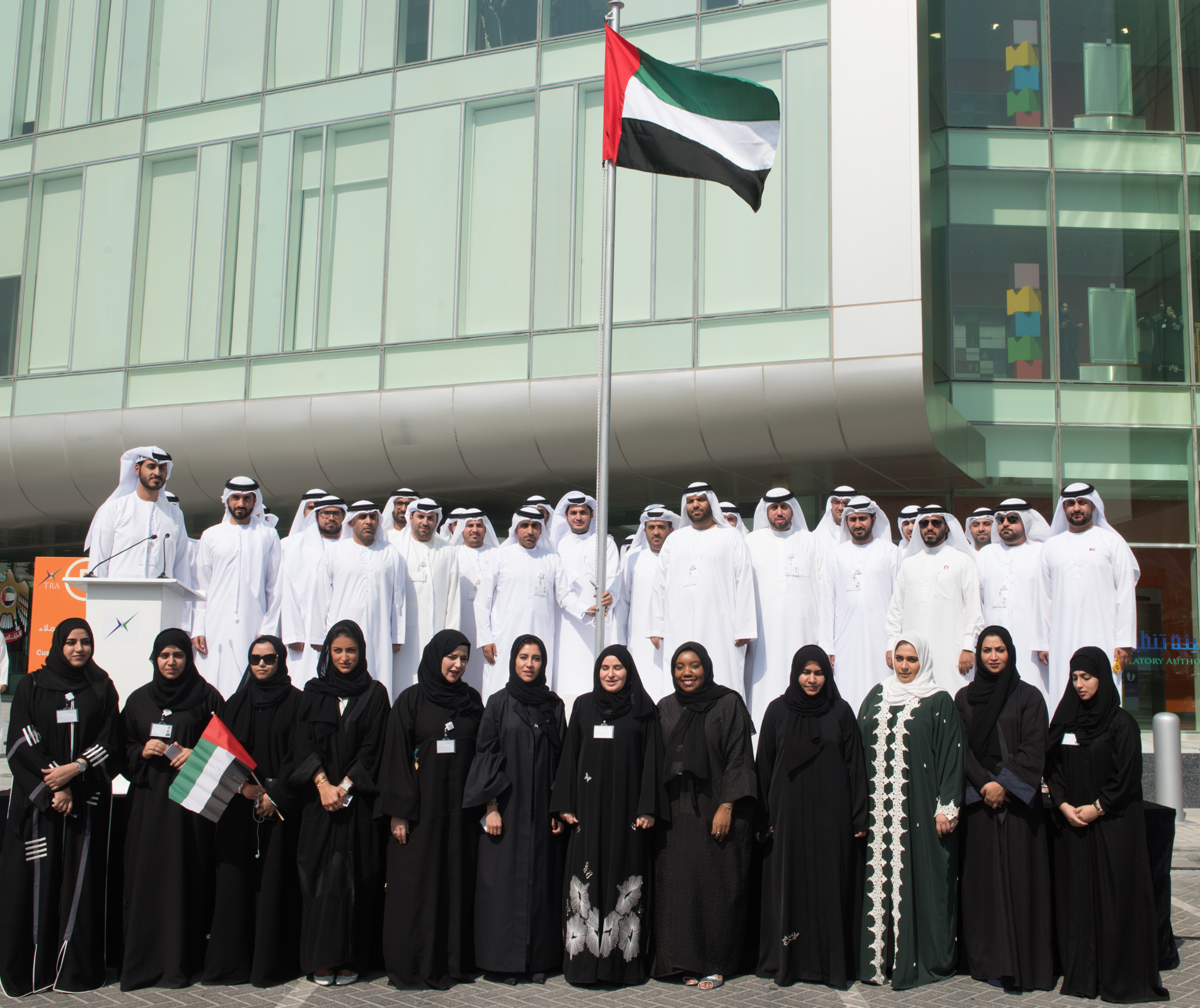 شارك موظفو الهيئة العامة لتنظيم قطاع الاتصالات أبناء دولة الإمارات العربية المتحدة احتفالاتهم بيوم العلم من خلال مجموعة من النشاطات والفعاليات التي أعدتها الهيئة خصيصا لهذه المناسبة الوطنية الهامة. وقد بدأ الاحتفال بمراسم رفع العلم الوطني وعزف السلام الوطني لدولة الإمارات، ومن ثم قيام سعادة حمد عبيد المنصوري، مدير عام الهيئة بإلقاء كلمة ركزت على معاني وقيم الفخر والاعتزاز التي يجسدها يوم العلم. كما ألقى سعادة المهندس، ماجد المسمار، نائب المدير العام لقطاع الاتصالات في الهيئة كلمة ركز فيها على أهمية المناسبة ورمزيتها لجميع من يقيم على أرض إمارات الخير.