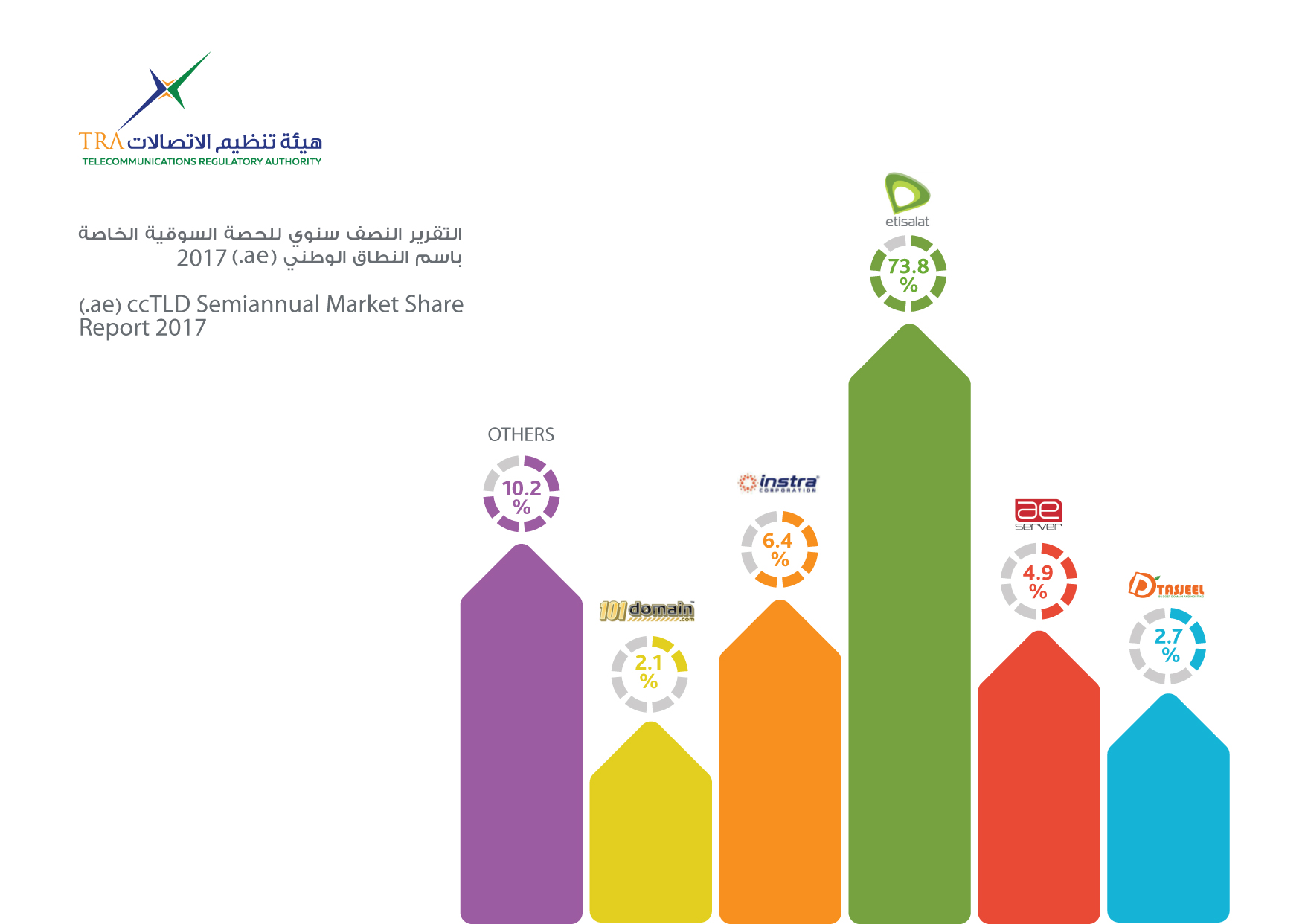 الهيئة العامة لتنظيم قطاع الاتصالات تكشف عن الحصص السوقية لمسجلي النطاق الوطني (.ae)