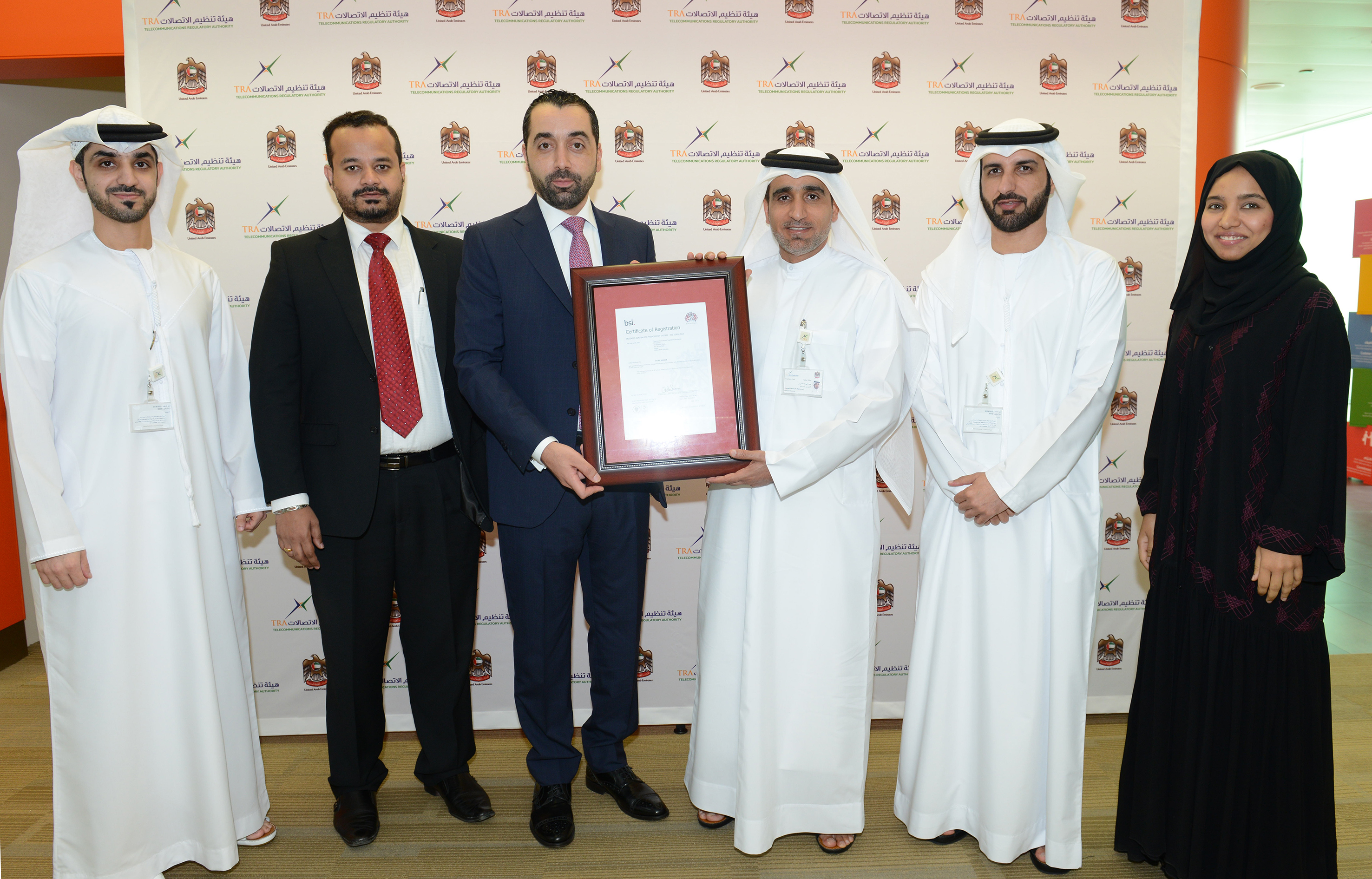 أعلنت الهيئة العامة لتنظيم قطاع الاتصالات اليوم حصولها على ثلاث شهادات من المنظمة الدولية للمعايير "أيزو"، وذلك في مجالات استمرارية الأعمال، ونظام إدارة الجودة، ونظام إدارة البيئة. وقد تسلم سعادة حمد عبيد المنصوري، مدير عام الهيئة العامة لتنظيم قطاع الاتصالات هذه الشهادات خلال اجتماع خاص مع السيد أحمد الخطيب، مدير عام معهد المقاييس البريطاني في منطقة الشرق الأوسط، في مقر الهيئة.