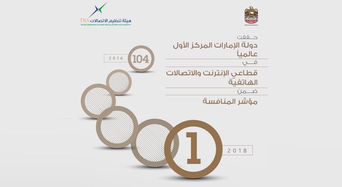 أعلنت الهيئة العامة لتنظيم قطاع الاتصالات عن تحقيق دولة الإمارات تقدماً كبيراً في مؤشر (المنافسة في قطاعي الإنترنت والاتصالات الهاتفية)، حيث ارتقت الدولة من المركز (104) إلى المركز الأول عالمياً، وذلك بحسب بيانات المؤشرات التي تم نشرها مؤخراً في تقرير مؤشر المعرفة العالمي الصادر عن برنامج الأمم المتحدة الإنمائي ومؤسسة محمد بن راشد آل مكتوم للمعرفة.