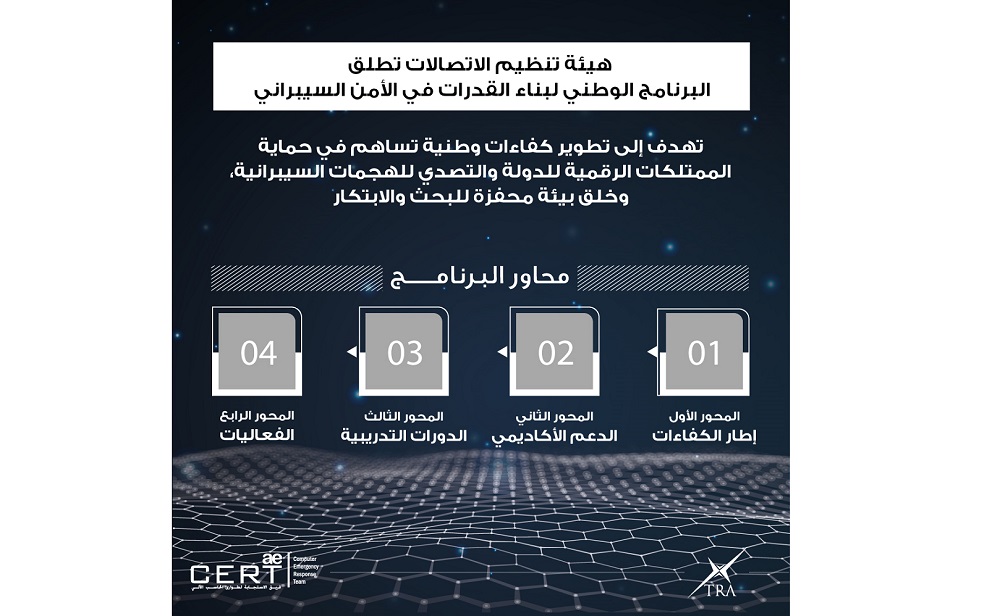 أطلقت الهيئة العامة لتنظيم قطاع الاتصالات البرنامج الوطني لبناء القدرات في الأمن السيبراني، أحد البرامج الأساسية ضمن الاستراتيجية الوطنية للأمن السيبراني، حيث يهدف البرنامج إلى تطوير قدرات وطنية على مستوى عالٍ من الكفاءة في مجال حماية الفضاء السيبراني والتصدي للمخاطر ذات الصلة.