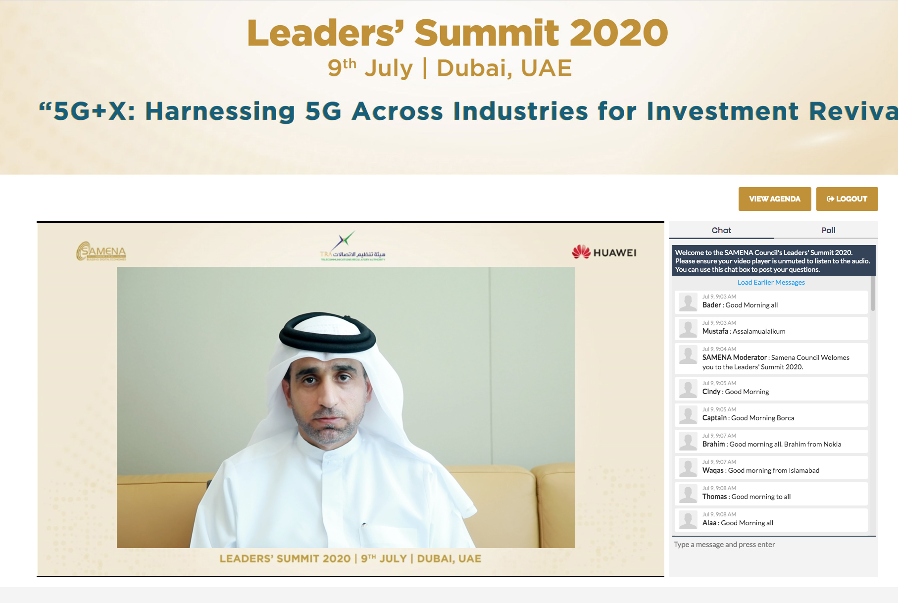 وفي كلمة ألقاها في بداية أعمال القمة رحب سعادة حمد عبيد المنصوري مدير عام الهيئة العامة لتنظيم قطاع الاتصالات رئيس الحكومة الرقمية لحكومة دولة الامارات بالحضور الكريم، متمنياً لهم النجاح في قمتهم التي تأتي بنكهة مختلفة، تختلط فيها التحديات والآمال، وأضاف سعادته بالقول: "لقد كانت تجربة الأشهر الأخيرة مليئة بالدروس. اليوم أصبح من الواضح أن التغيير الأبرز الذي يؤثر على نمط حياة الناس وطرق الإنتاج والإدارة والحياة اليومية هو الذي يدعمه قطاع الاتصالات والمعلومات، ليست الأوبئة بجديدة على تاريخ البشرية، ومع كل وباء يقوم الناس بتعبئة دفاعاتهم للحفاظ على الحياة، بالاعتماد على القطاعات الصحية والأمنية والدفاعية، . إلا أنها المرة الأولى في التاريخ التي يصبح فيها قطاع الاتصالات عنصراً حاسماً في معركة الحياة".